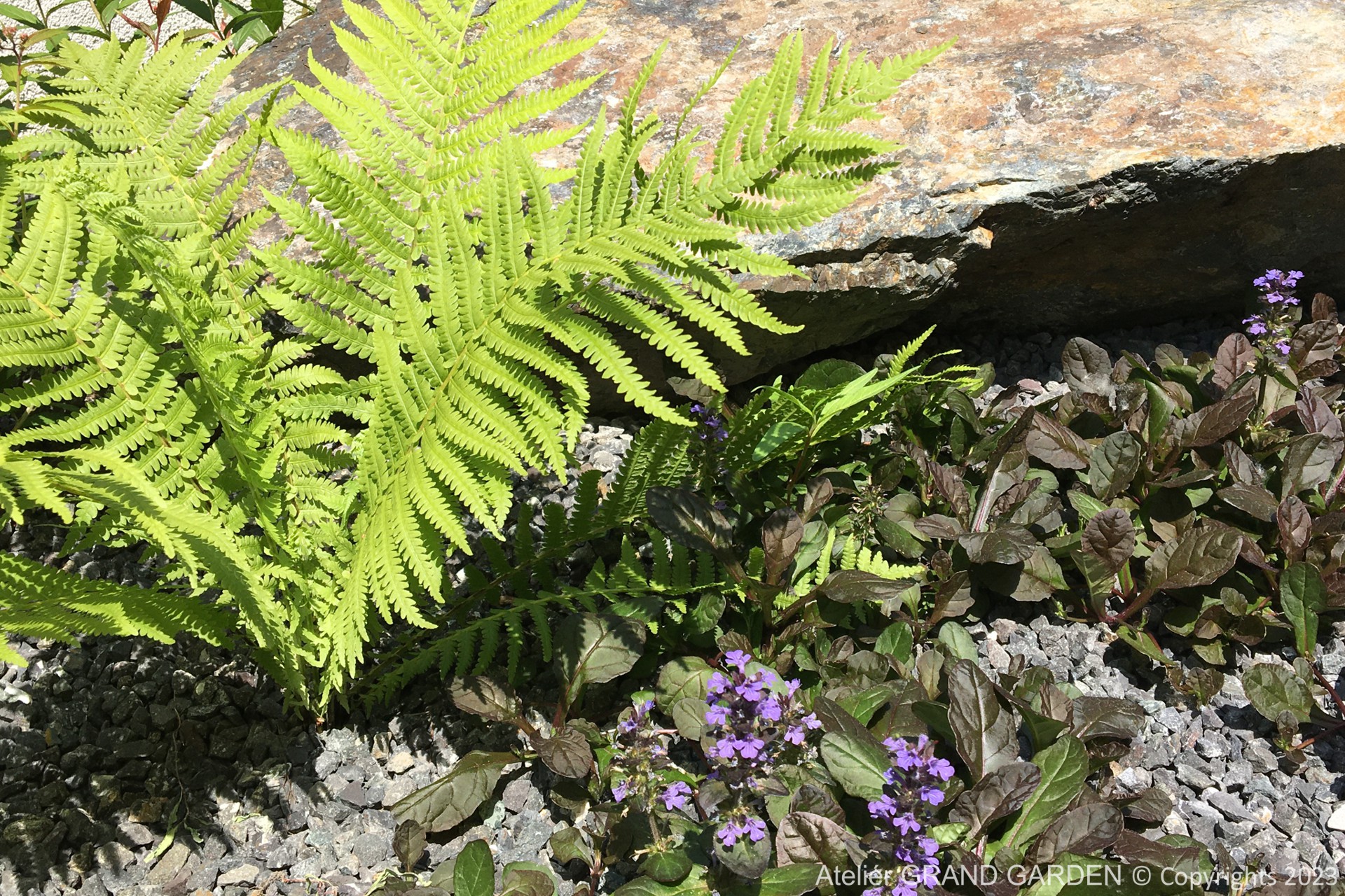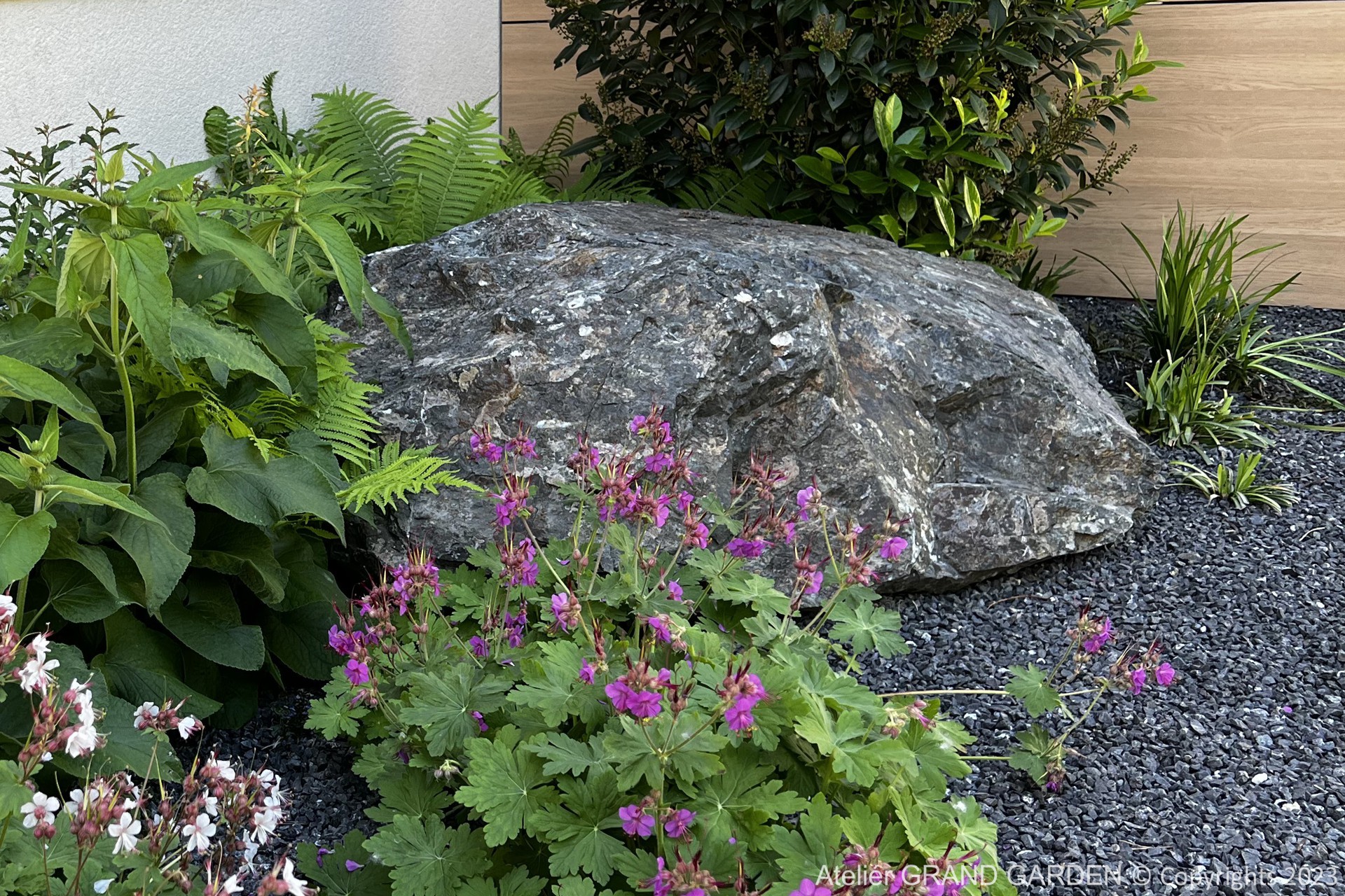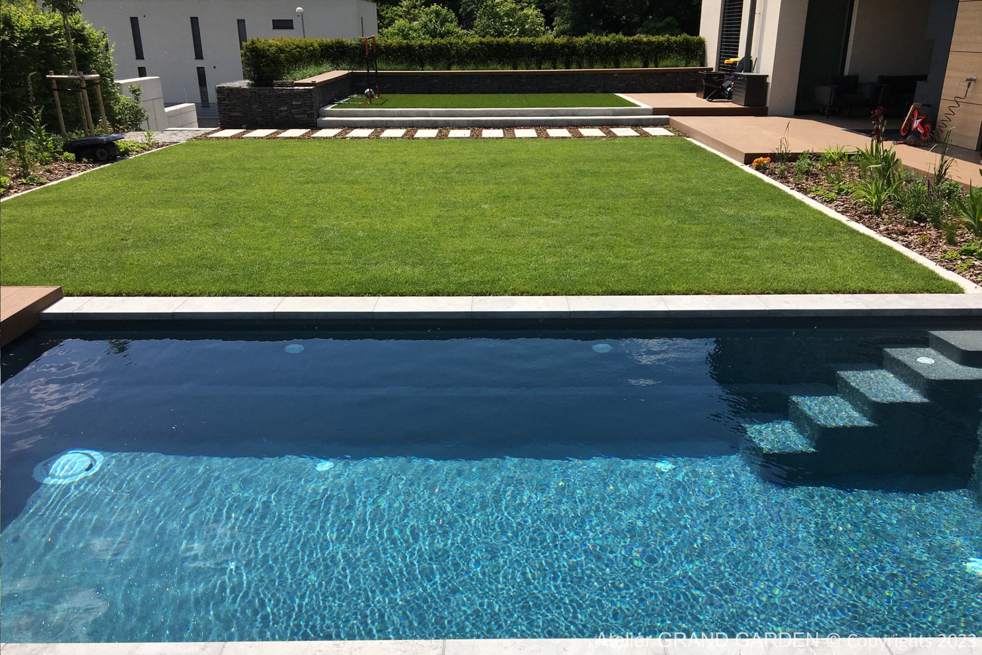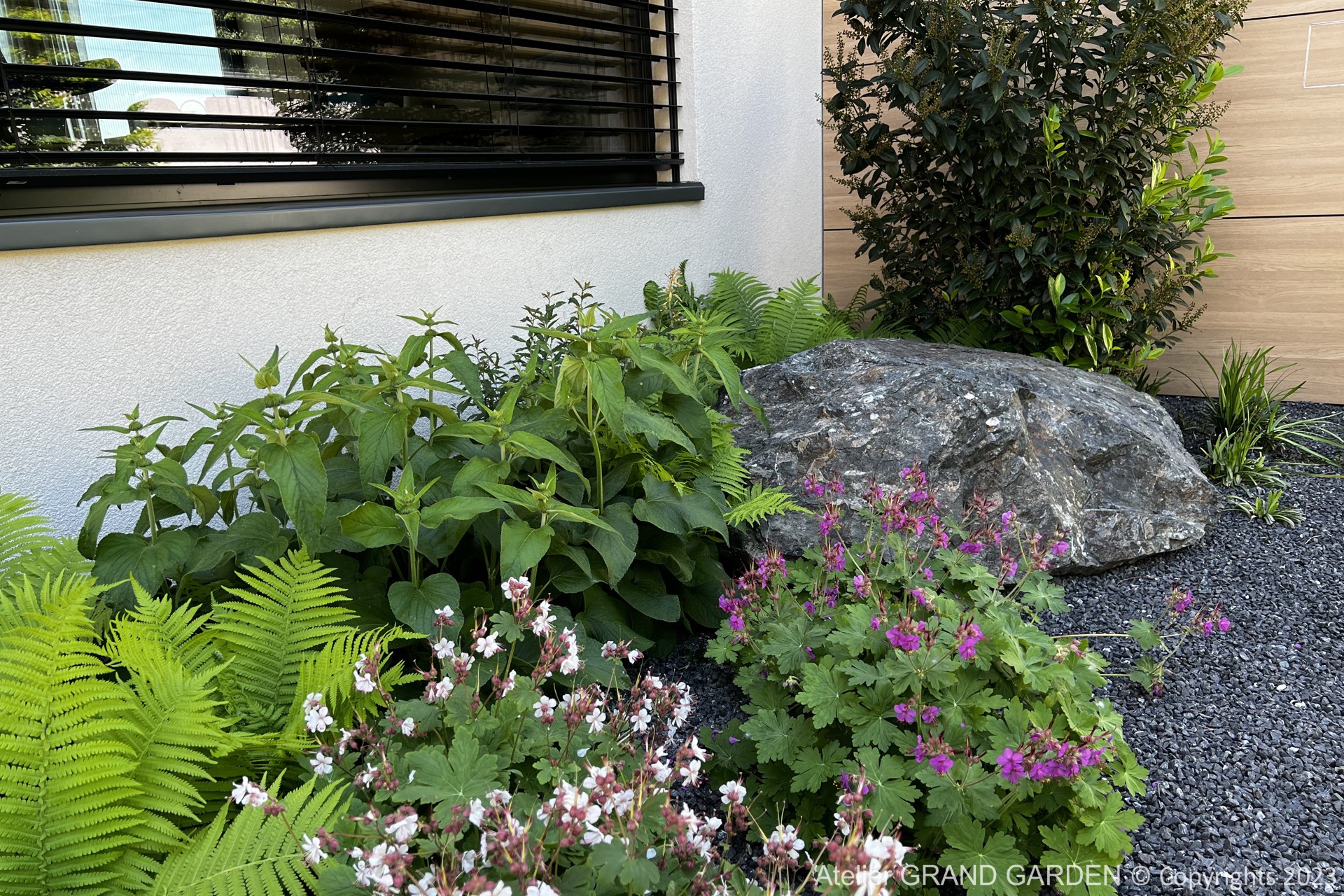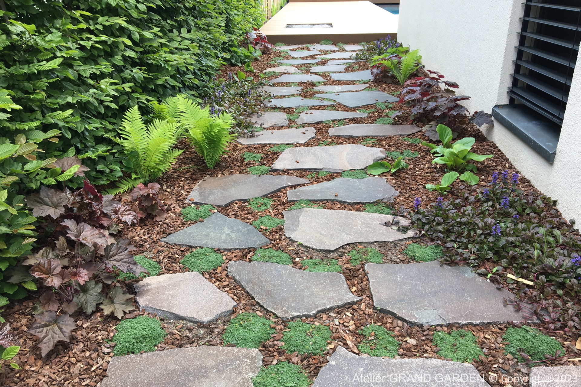 Progresívna záhrada je ukážkou symbiózy moderných technických a prírodných prvkov. Je súčasná v duchu, striedma výberom materiálov a tradičná použitím rastlín. Jej jednoduchá, minimalistická kompozícia, sa prispôsobuje pôdorysu domu. Moderné kompozitné materiály palubovky, keramický bazén, okraje záhonov a šľapáky z pohľadového betónu ju robia nadčasovou. Prírodné kamene ako Andezit či Melafýr v podobe gabiónov či balvanov jej zas prepožičiavajú prírodný náboj. Rastlinná schéma nesie znaky tradicionalizmu, bergénie, kosatce, pakosty, funkie, paprade, heuchery, zbehlíky či kuklík zjemňujú charakter záhrady a dodávajú jej punc prirodzenej, až vidieckej naturálnosti. Kompaktné kvetinové záhony, detská zóna s praktickým umelým trávnikovým povrchom, samočistiaci bazén a nadväzujúce kompozitné palubovky, moderný záhradný prístrešok , grilovací kút pri hlavnej terase či automatická kosačka robia záhradu nadčasovou a ľahko udržiavateľnou.