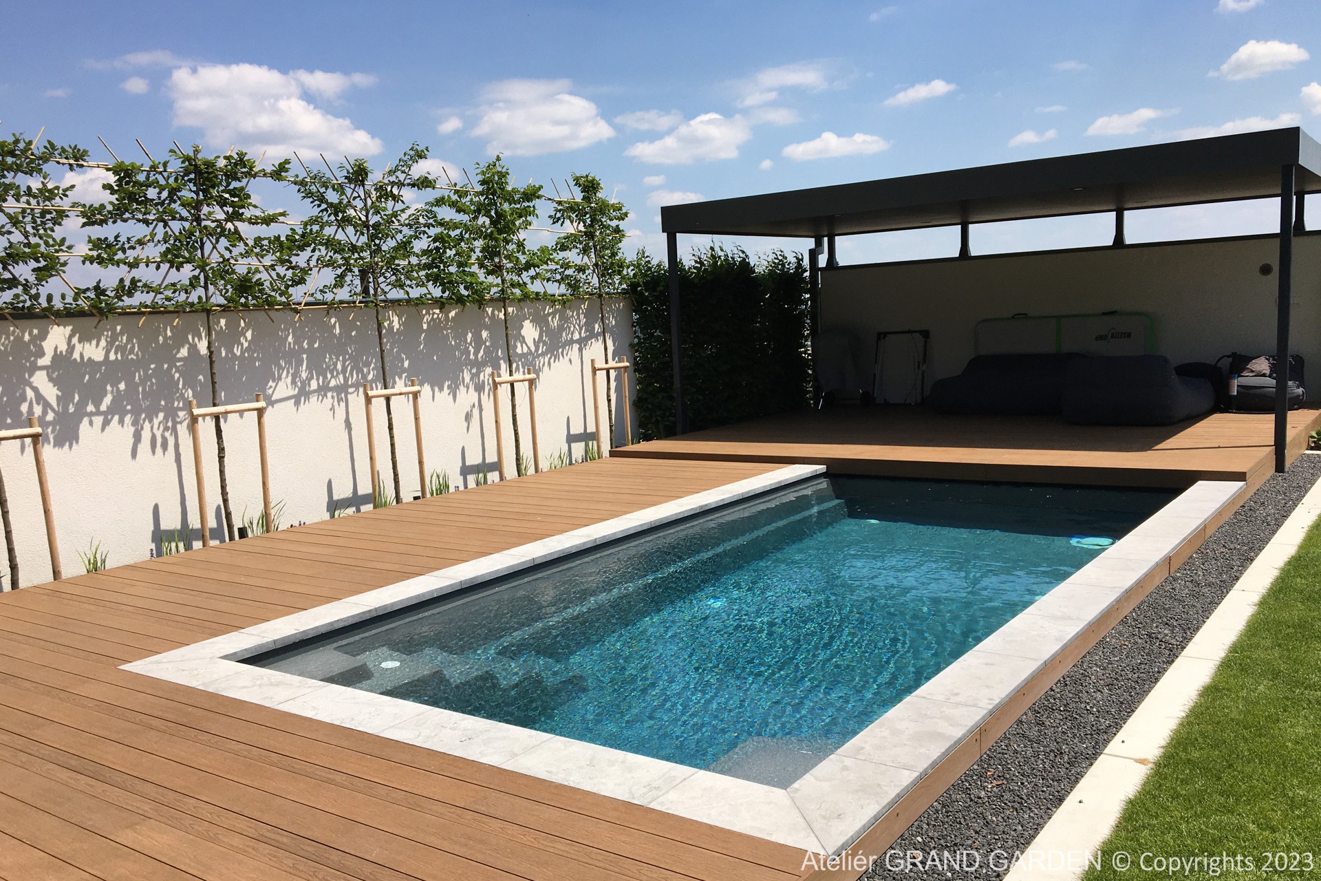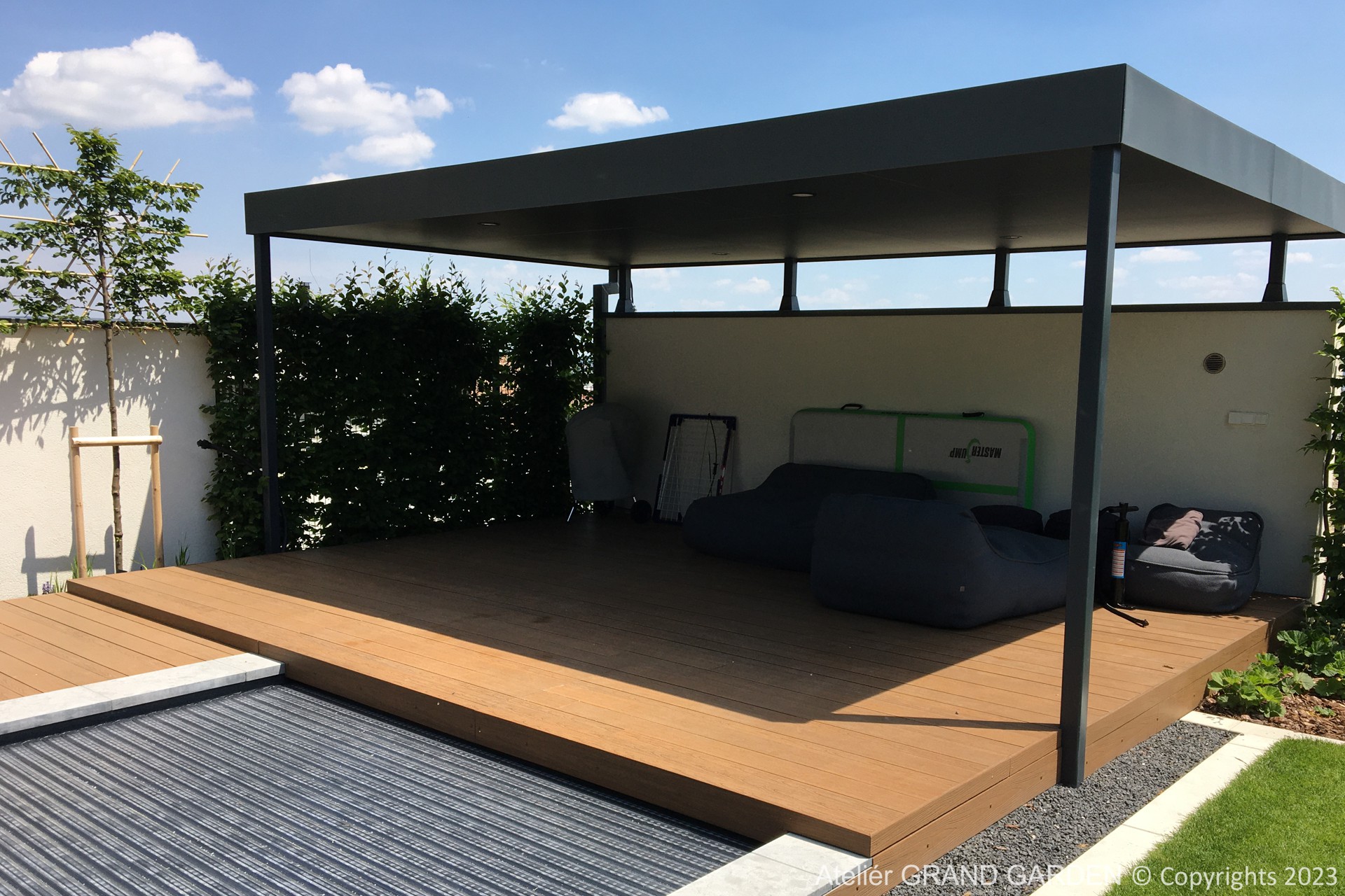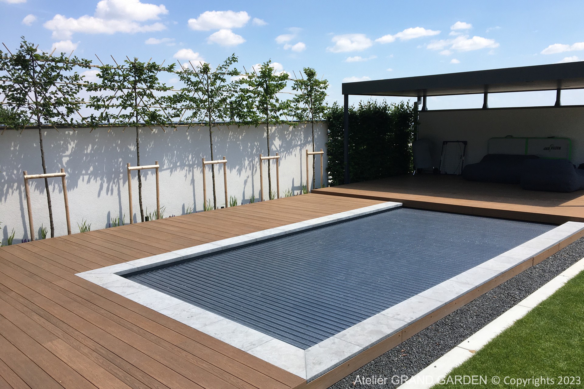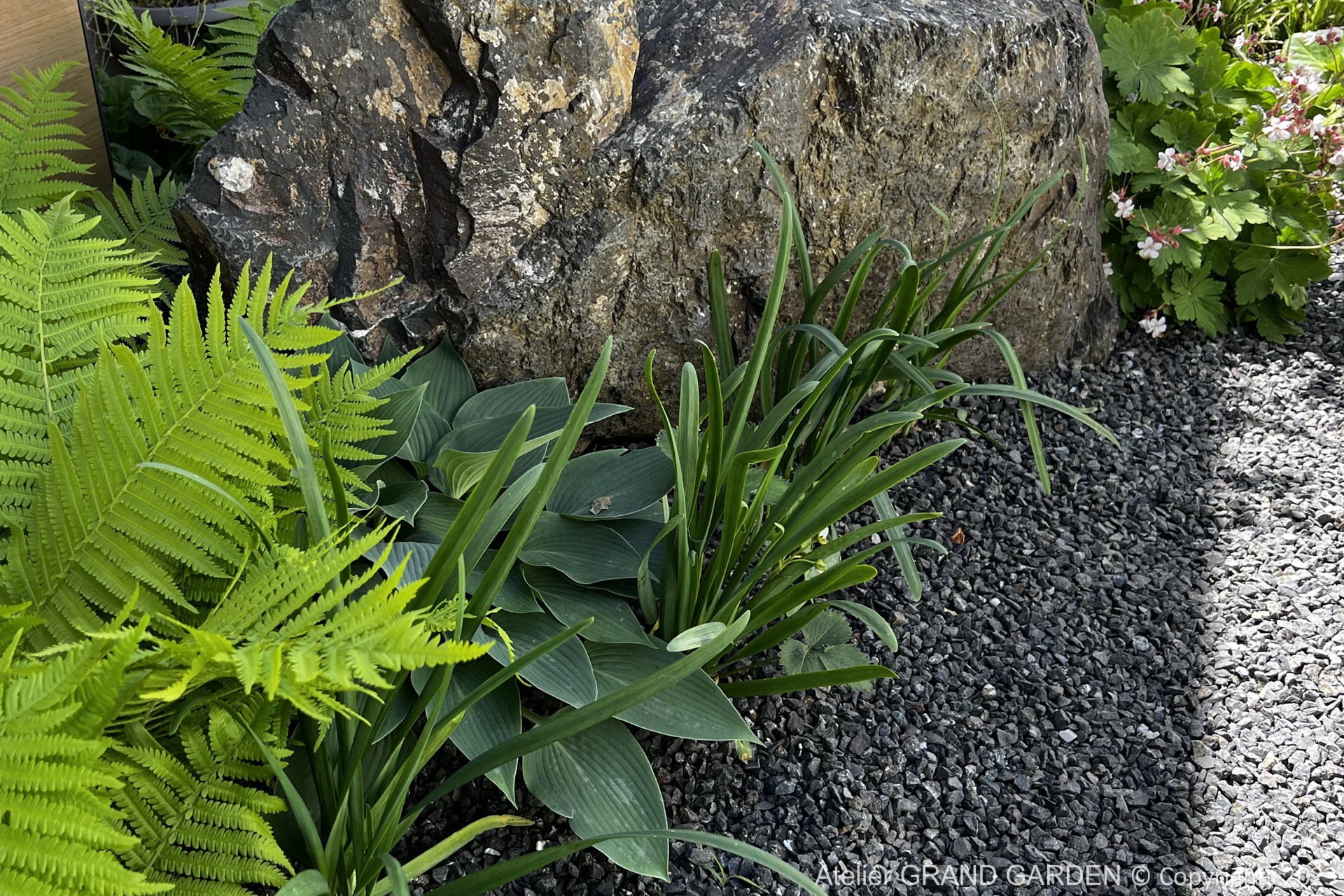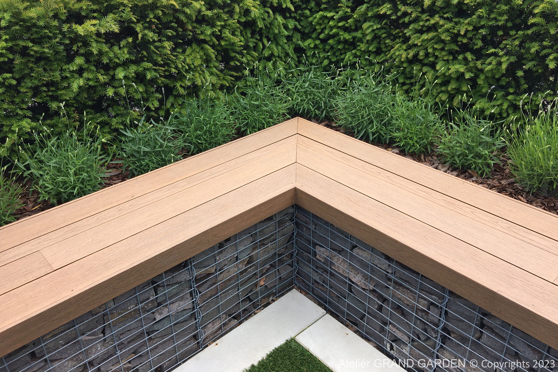 Progresívna záhrada je ukážkou symbiózy moderných technických a prírodných prvkov. Je súčasná v duchu, striedma výberom materiálov a tradičná použitím rastlín. Jej jednoduchá, minimalistická kompozícia, sa prispôsobuje pôdorysu domu. Moderné kompozitné materiály palubovky, keramický bazén, okraje záhonov a šľapáky z pohľadového betónu ju robia nadčasovou. Prírodné kamene ako Andezit či Melafýr v podobe gabiónov či balvanov jej zas prepožičiavajú prírodný náboj. Rastlinná schéma nesie znaky tradicionalizmu, bergénie, kosatce, pakosty, funkie, paprade, heuchery, zbehlíky či kuklík zjemňujú charakter záhrady a dodávajú jej punc prirodzenej, až vidieckej naturálnosti. Kompaktné kvetinové záhony, detská zóna s praktickým umelým trávnikovým povrchom, samočistiaci bazén a nadväzujúce kompozitné palubovky, moderný záhradný prístrešok , grilovací kút pri hlavnej terase či automatická kosačka robia záhradu nadčasovou a ľahko udržiavateľnou.
